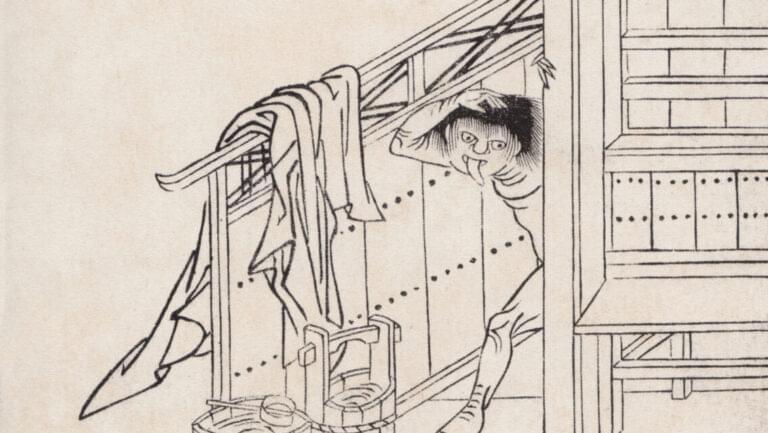 Number four: This is maybe my favorite and the least thought-out of all of them. It’s said in Fukuoka the story was that Kuchisake-onna loved to play Space Invaders, so if you chucked a hundred yen coin or two her way, she’d grab it and then she’d hurry off to the nearest arcade to play the game. There is also the advice that yelling “niniku” at her will cause her to run away. Let me translate: niniku is garlic, so you should yell “garlic garlic garlic–niniku, niniku, niniku,” and flee. Or, you can insult her by hurling “hage, hage” her way, and that would be “bald bald” or “baldy baldy.”