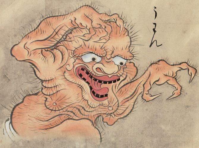 A hatsugyo is said to be related to the mermaid and there is an old story of a man catching one in a pond, taking it home, putting it in a big tub full of water with a lid on it, then going to sleep. That night the God of the pond appeared to him in a dream and said, what the heck, why would you steal an innocent pond creature and lock them up like that? When the man woke up and went to check on his new pet, the strange human hair fish, hatsugyo, was gone.